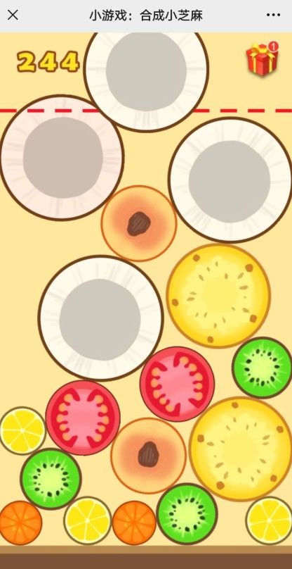 然后我发现,每次我死,都是被大水果卡死的。大水果面积太大了,一个菠萝+一个椰子就能卡主整个页面。然后小水果挤在中间,大水果就没办法合成,然后我就卡死了。如图