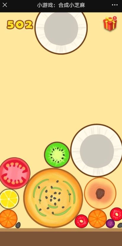 水果合成和大西瓜正好相反,最后两个小葡萄合成一粒小芝麻,但是!!两粒小芝麻可以合成一个芝麻饼!太可爱了!!两个芝麻饼又能合成一个更大的芝麻饼!
