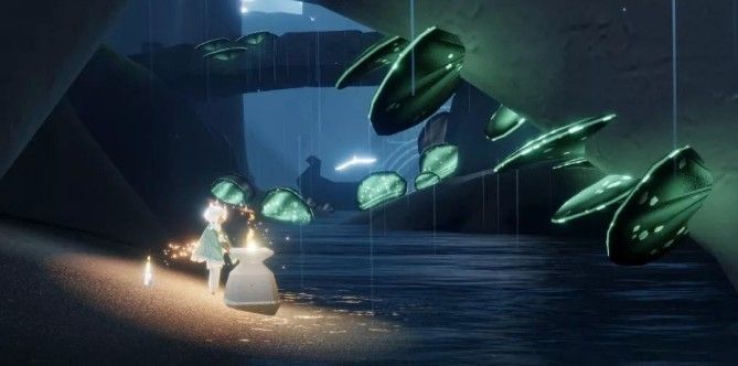(在雨林的第一张图中,飞入云洞的树林中,等待着星光的到来,飞上去抓住它)