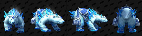 雪暴的基础造型为战熊,但是配色采用了蓝白为主,极富寒冬气息,脖颈级后腿处的冰凌彰显着其极大的危险性,身负鞍座外两边还各有一个装饰用的物品袋。