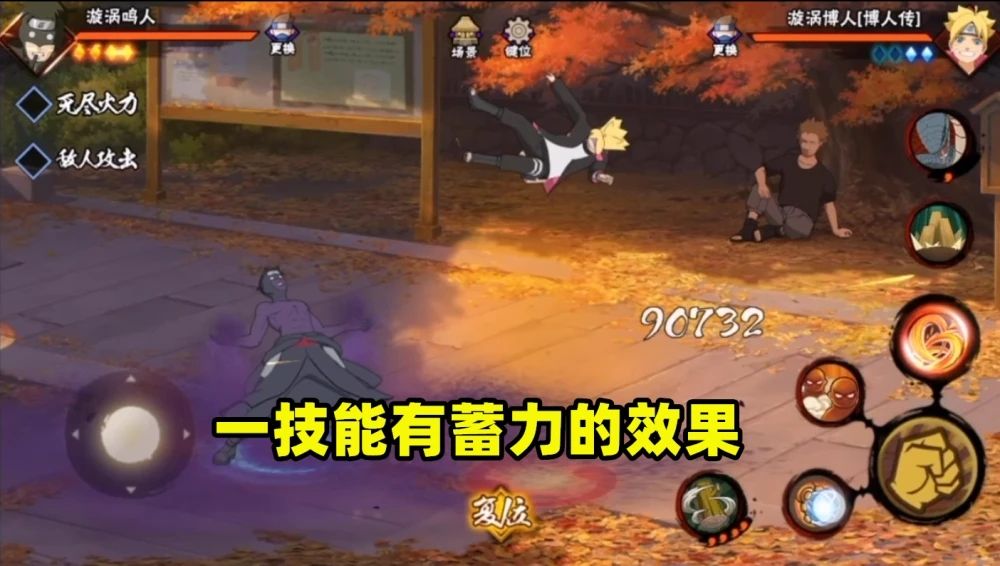一技能主要的作用就是切换形态,但同时也有一个蓄力攻击的效果。首次释放会让油女取根进入到磷坏虫形态,在这个形态下再次释放一技能会有一个磷坏虫·散的攻击效果。这两个攻击效果其实区别不大,你可以简单理解为就是暴怒带土一技能释放第一段的效果,只是没有了那个释放瞬间的虚化无敌。而在磷坏虫状态下长按一技能会有一个蓄力的攻击效果,攻击的范围和伤害也会相应地提升。
