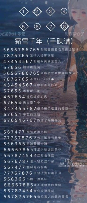 2、弹奏一共八个音,需要特殊乐谱进行弹奏。