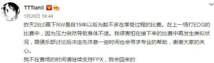 在今年1月的时候,FPX战队冠军打野选手Tian因为个人原因,表示需要退出赛场,暂时休息一段时间。周杨博(FPX.Bo)也是在当时接替了Tian的位置,作为FPX战队的打野位选手出战,尽管场次不多,但表现比较亮眼。