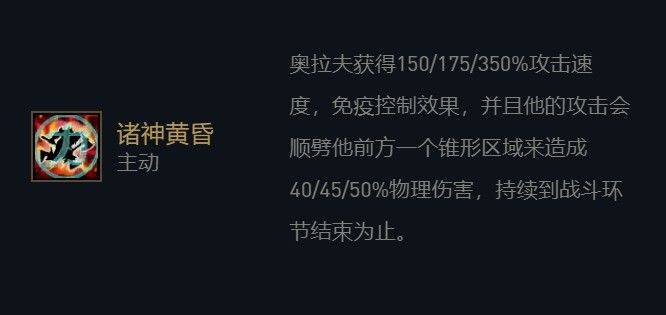 奥拉夫这个英雄就不多介绍,是触发龙魂羁绊最佳的英雄,被动能够免疫控制和提升攻击速度。只要搭配上分裂弓,奥拉夫的伤害绝对是非常爆炸的。