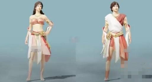 首先介绍的是扶摇飞仙套装,不难看出灵感是从魏晋南北朝敦煌的飞仙壁画得来的,不长翅膀不生羽毛,没有晃眼的光效,借助彩云飘渺飞舞,彩带与衣裙摇曳而其起,加上金黄面纱和饰品也给扶摇飞仙添上神秘感,对比男女角色的效果,主调淡黄色,加上红彩和黑色融合,让女生不失窈窕,男生更添威武。