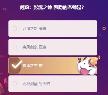 问题:影流之镰凯隐的老师是? 答案:影流之主劫
