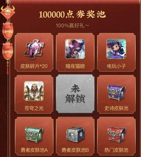 今年这个活动也是再度开启了,大家可以看到累计消费1500点券和12500点券和5万点券和最高的10万点券都可以领取对应的福利。当你累计达到10万点券的时候,你就会发现里面所有的奖品你必得一个,其中最差的也是20皮肤碎片,所以这也是玩家们热衷的原因。
