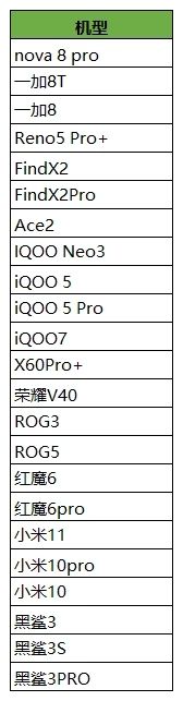 既然是高帧率模式,那肯定是对机型有标高的限制,并不会对所有机型开启,目前只是对部分机型开启,具体的机型如下: