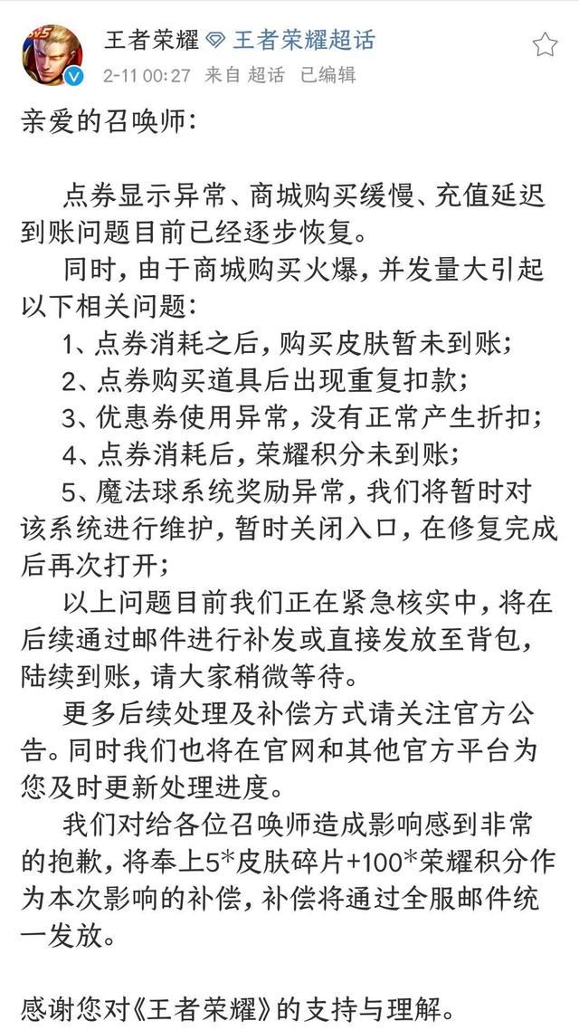 王者荣耀点券清零了什么情况?2月11日点券全部清零解决方法