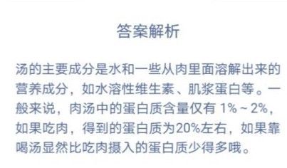 蚂蚁庄园肉汤营养全在汤里是正确的吗?总有人说煲汤的精华全部都是在汤里面,也就是说营养都在汤里,这种说法很多人都不知道究竟是不是对的,接下来本站小编这就来给大家详细的讲解一下这个问题的正确答案。