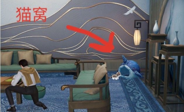 6、猫咪:椰奶在大厅,后面的玄鲸猫窝可以翻找私房钱有30W云券和成就。