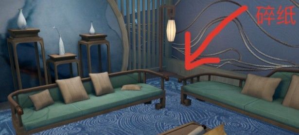 5、大厅右侧沙发的角落,可获得拼好的纸条*1