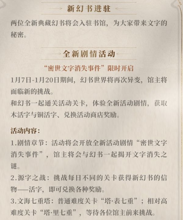 文海七重塔:普通难度关卡“塔表七重”,相对高难度关卡“塔里七重”,等待各位馆主前来挑战。