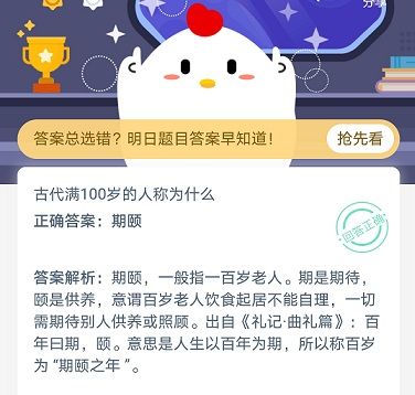 古代满100岁被称为 古代满100岁称为什么蚂蚁庄园