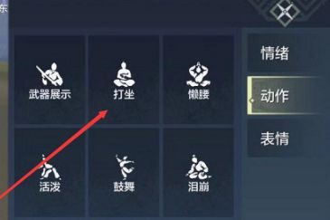 4.在动作界面选择打坐即可。