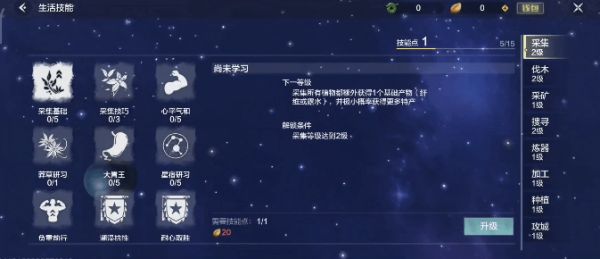 生活技能在运用后会得到经验升级,升级的时候会获得技能点,而技能点就可以用于点出更多的生活技能。