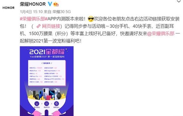 1月5日荣耀商城在微博正式官宣:1月12日,荣耀官网自营商城将上线,同样荣耀将推出自己的交流平台——荣耀俱乐部,根据之前网络上的消息,荣耀新一代旗舰产品荣耀V40也将在这一天发布,这意味着1月12日,荣耀、华为正式分手。