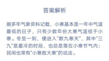 小寒和大寒都是冬季节气,大多数情况下哪个时段更冷?蚂蚁庄园1.6今日答案