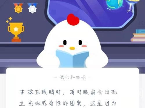 蚂蚁庄园揉眼睛出现光斑这是为什么呢?这是因为我的视网膜我压力压过后就会出现一种视网膜被骗的现象。为了缓解眼睛就会出现光斑或者不同的图案了。这是一个正常的现象,但是小编还是要提醒大家不要经常揉眼睛哟!