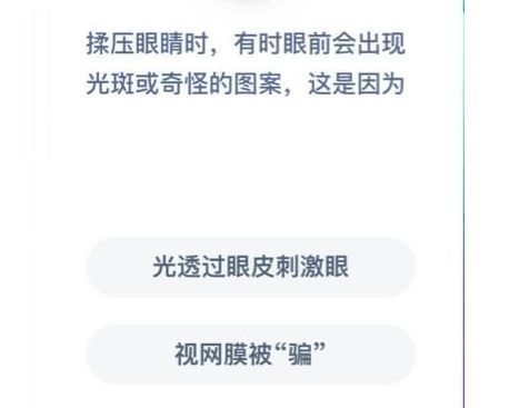 问题:揉压眼睛时,有时眼前会出现光斑或奇怪的图案,这是因为?