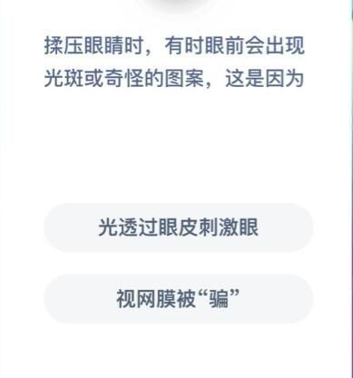揉压眼睛时,有时眼前会出现光斑或奇怪的图案,这是因为 蚂蚁庄园2021年1月4日答案