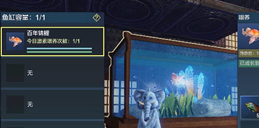 然后玩家可以放在鱼缸里面,进行养鱼,如果你把这个锦鲤给养活了,就可以得到三个锦鲤兑换券,如果不小心没有活下来,那么只能得到一个锦鲤兑换券。