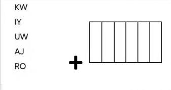 KW:-.- .-- 、IY:.. -.-- 、UW:..- .-- 、AJ:.- .--- 、RO:.-. ---