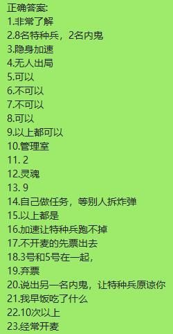 在这25道题中,有5道题是可以灵活运用的,只要答对20道题,就可以获得光子赠送的“谁是内鬼”的房卡。