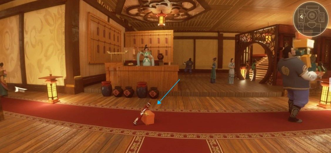 2、根据箭头提示进入房间内,一般有提示,那就是闪亮的点,正上方是杨玉环的应援手幅,点击就可以看到线索。