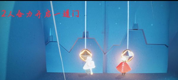 在光遇地图中找一个需要2人打开的大门,在禁阁图入场大厅右侧有一扇是最近的,不过玩家们可以在跑图的时候,开启2人大门即可。