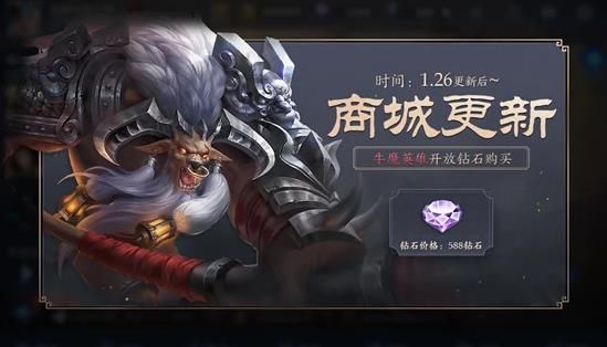 1月26日更新后,牛魔就可以通过钻石购买了,钻石价格是588,而且小编估计,以后王者荣耀官方可能会出一个牛魔王的大话西游新皮肤哦,真的是有点期待啊!
