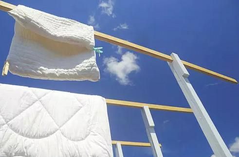 其次,化纤面料或混合纤维面料的被子,不宜在阳光下曝晒,因为化学纤维长时间处在高温下会释放出化学物质。这类被子可以先覆盖一层薄棉布再晒,就能保护被面不受损害了。另外,羊毛被和羽绒被的吸湿性和排湿性非常好,晾晒时最好也盖一块棉布。