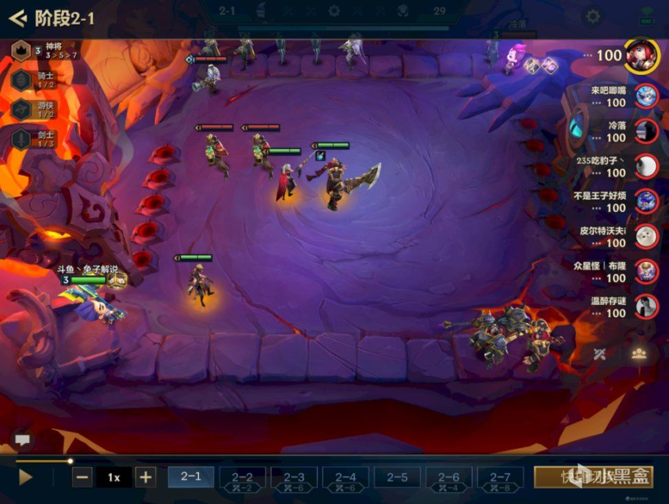 2-1不上人口,前期使用3神将即可,2-1建议吃10块钱利息,这里我没打过然后卖了那张铁男吃利息了。