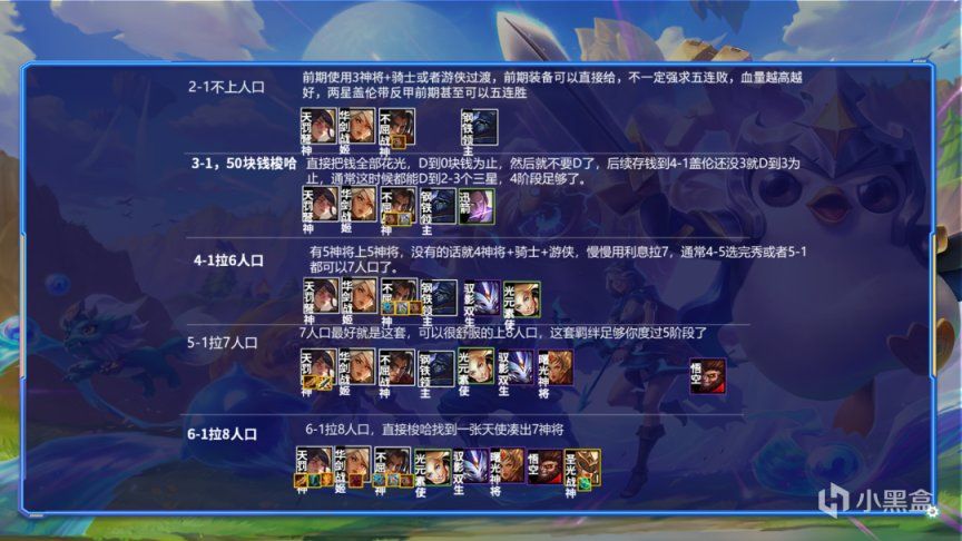 4-5或者4-6就可以上7人口了,这时候必须要有5神将,不然你5阶段稳不住血量。