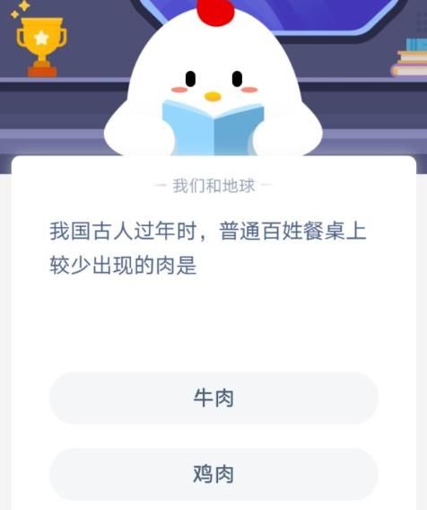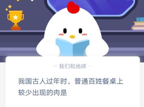 蚂蚁庄园我国古人过年时可以吃什么肉?今天的最新问题是关于古人过年的问题,古人过年的肉类比较少,在普通百姓家庭的餐桌上最少见的一种肉是什么?下面是本站小编提前为大家准备好的攻略,为详细的介绍在古代百姓餐桌上最少的肉。
