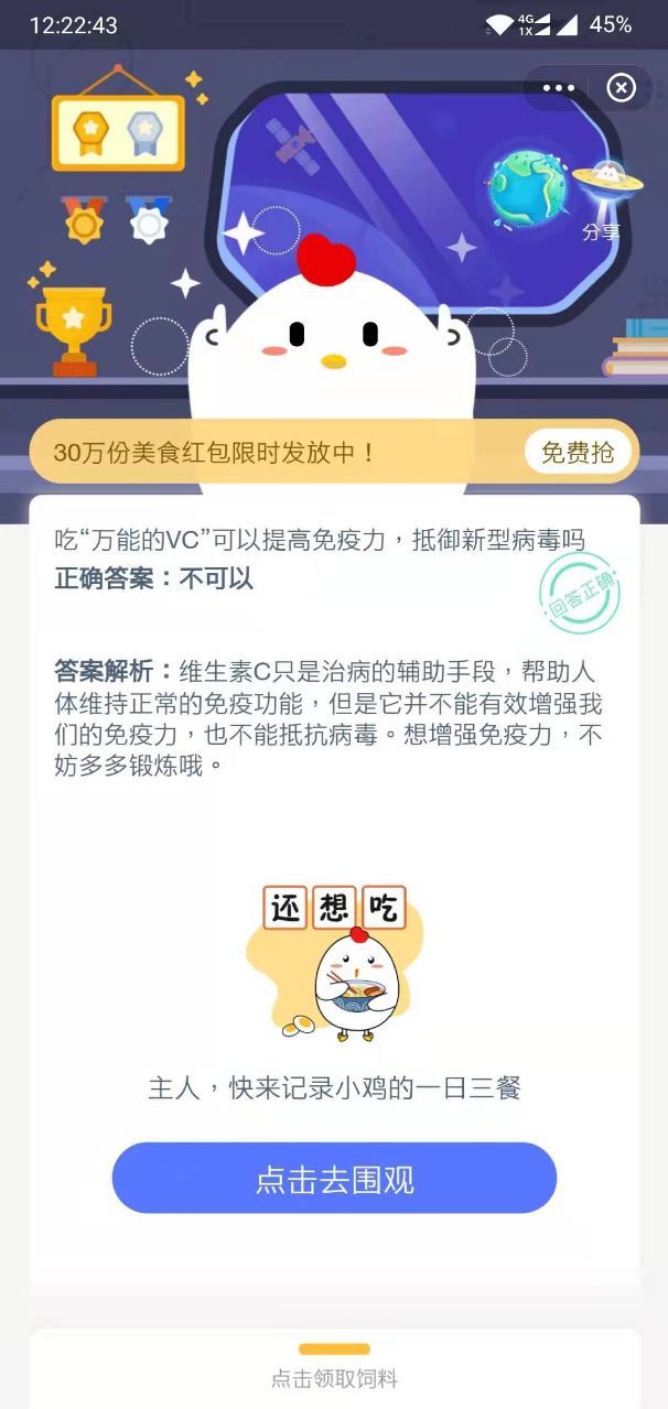 蚂蚁庄园吃万能的VC答案 吃维c能预防新型冠状病毒吗