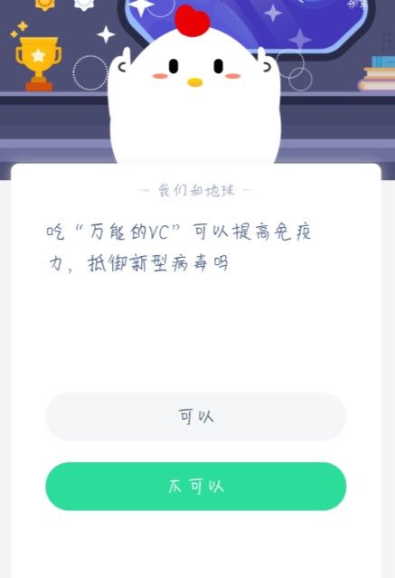 蚂蚁庄园吃vc可以提高免疫能力吗?在防护新型病毒期间,其实很多人都会选择吃万能的vc,那么今天我们就来讨论一下吃万能的vc是否可以提高免疫力抵抗新型病毒,本站小编会将这道题的正确选项分享在下面的攻略里面。