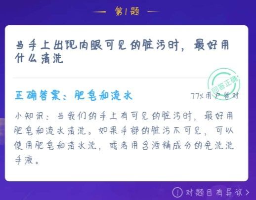 当手上出现肉眼可见的脏污时我们最好用什么清洗 蚂蚁庄园今日答案最新1.23
