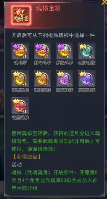 活动期间,开启三种礼包,更有魂核宝箱来袭!
