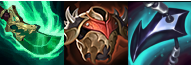 卡蜜尔的核心装备就是青龙刀,青龙刀搭配挑战者的攻速加成快速回蓝能让卡蜜尔在前中期持续的保持护盾,而且技能提供的回血效果也在前中期的效益极强,其次优先选择肉装,让卡蜜尔的强势期更持久,反甲、龙牙分别针对版本大火的卡特和黑白魔法,安全过渡。