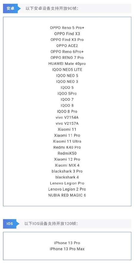 后续官方会陆续扩展符合高帧率性能要求的机型名单,所以官方后续会继续公布支持机型名单。