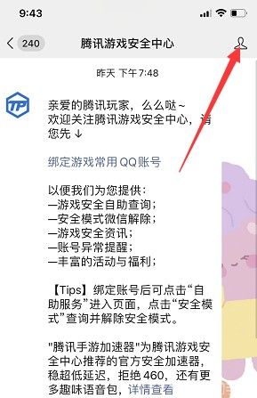1、在微信中搜索【腾讯游戏安全中心】的公众号,搜索之后进入聊天界面;