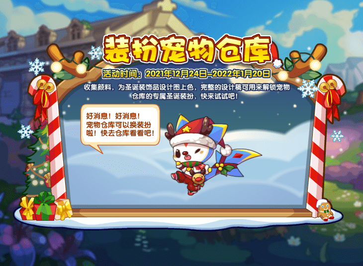 宠物仓库可以更换装扮啦!通过活动解锁宠物仓库的新装扮,在仓库中可任意搭配使用。快去仓库看看吧!