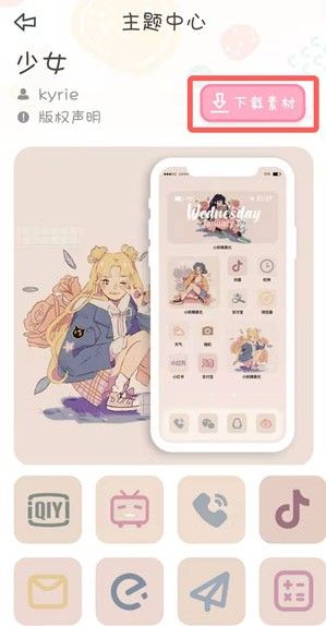 2、然后点击上方的【下载素材】按钮,将图标素材下载到手机的相册中;