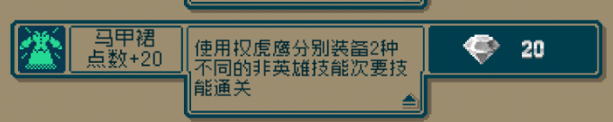1、权姐的马甲裙皮肤解锁,需要使用2种不同的非英雄技能通关才能解锁。
