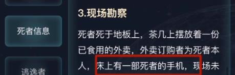 死者死于地板上,茶几上摆放着一份已食用的外卖,外卖订购者为死者本人,床上有一部死者的手机,现场未发现属于凶手的鞋印、毛发、指纹等痕迹。