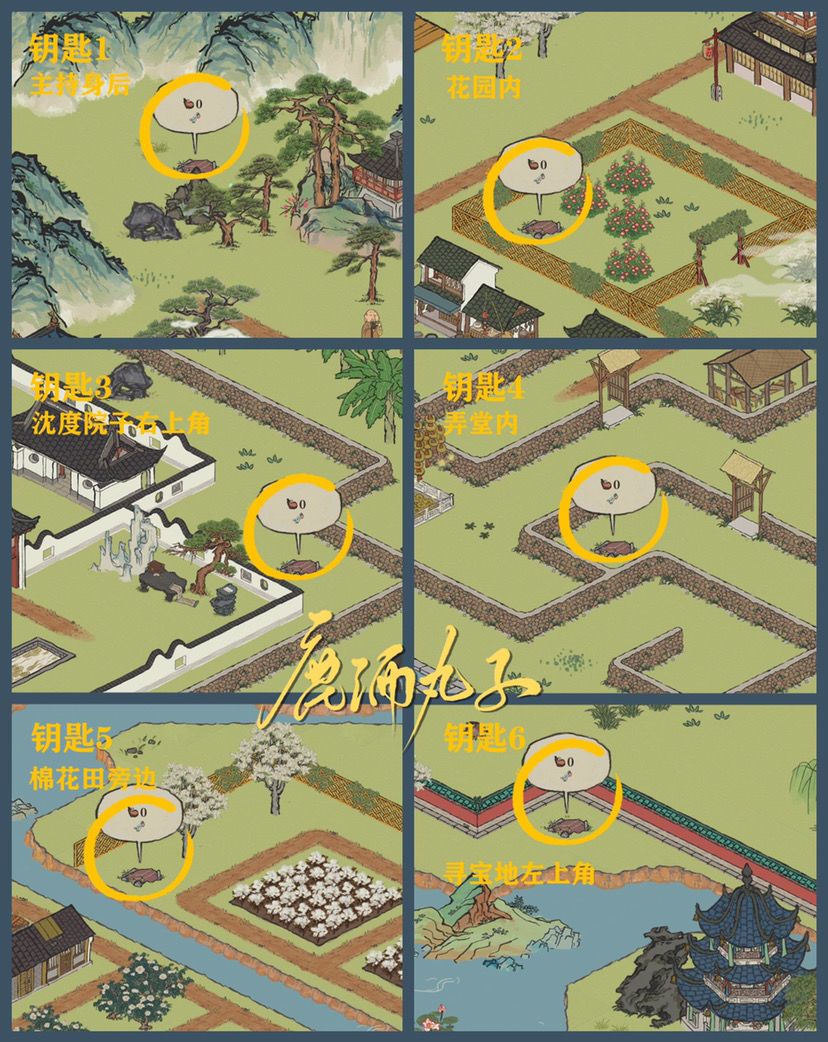 宝箱和钥匙分别都是有6个,图中就是全部的宝箱和钥匙的位置了,玩家们可以根据图中的这个位置去找。