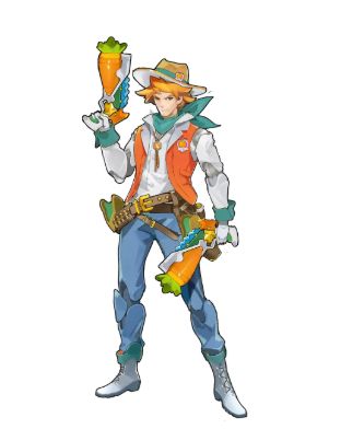 设计上使用大量的胡萝卜元素强化他的牛仔身份——他将胡萝卜塞进双枪,佩戴胡萝卜配饰,只为吸引属于自己的“好马”。