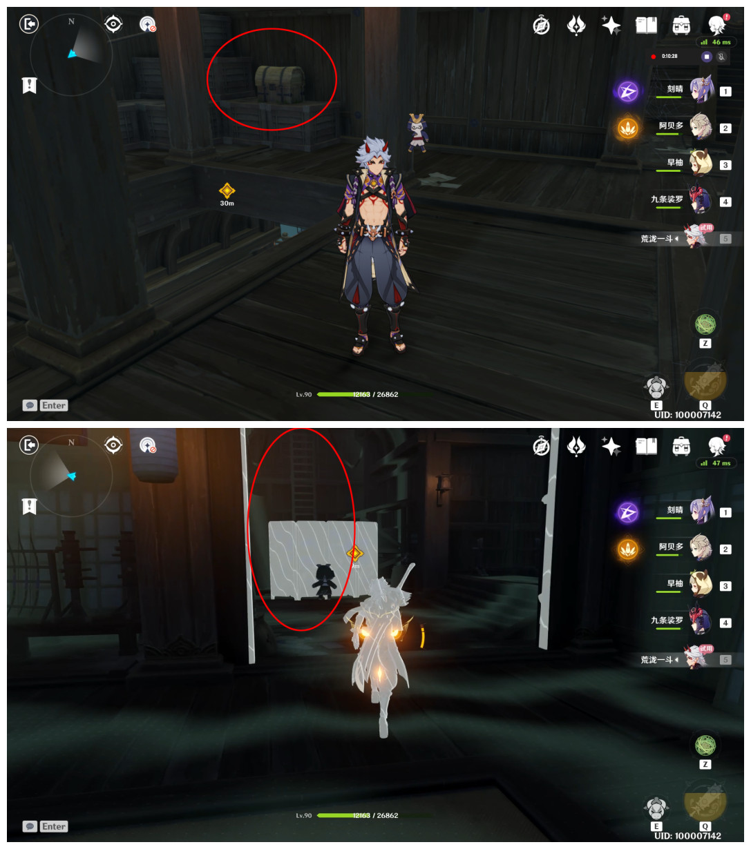 一.此处宝箱可直接获取(在第二个拉杆机关背后,即连接一楼和二楼爬梯附近)