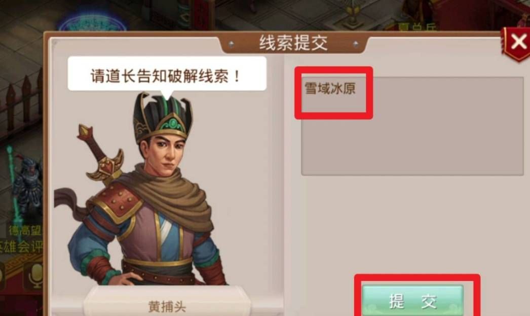2、回到官府对话黄捕快,再次对话黄捕快提交线索雪域冰原。前往玄洲,往下走到雪域冰原中,拾取两个雪块。前往天墉城对话段铁心,返回官府对话黄捕快。出官府对话大胡子,再次对话大胡子,选择破解难题,输入OTU。回到官府对话黄捕快,再次对话黄捕快提交线索百花谷一,1分钟后对话黄捕头询问结果,结案。